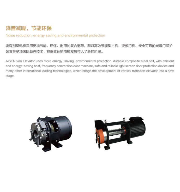 简介:埃森曳引背包别墅电梯,在空间较小的情况下, 依旧可以拥有轿厢,配备一体式吊顶及精心设计的人机界面,个性化外观,给您独一无二的视觉体验。采用独特的钢带主机配合复合钢带,运行高效便利,舒适安全,为您量身打造一部只属于您的智能化家用电梯。